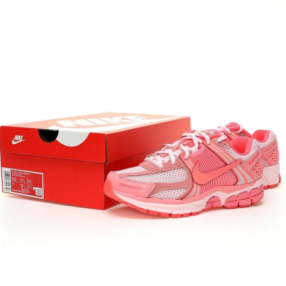 حذاء رياضي زوم فوميرو 5 من تصميم نايكي، يتميز هذا المنتج بأجزاء داخلية بوسائد ونعل مطاطي ضد الانزلاق وتوقيع علامة نايكي ولمسة شريط أمامي وبطانة بطباعة شعار نايكي
